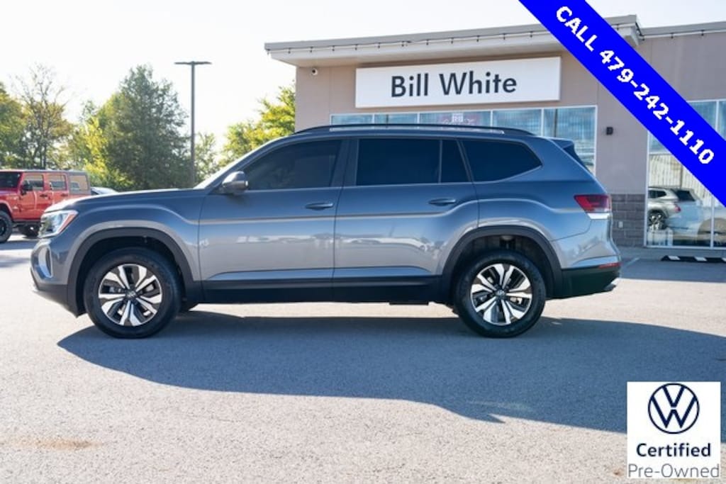 CARFAX One-Owner. Clean CARFAX. 2024 Volkswagen Atlas 2.0T SE 2.0L TSI FWD Platinum Gray Metallic A Fayetteville & Rogers Volkswagen Dealer in Fort Smith Thanks for checking out Bill White Volkswagen! Shopping for your next automobile should not be stressful, and we are here to assure that it isn't. We are located in Fort Smith and proudly serve Little Rock, Fayetteville and Rogers Volkswagen customers. Our staff is ready to assist you in any and every aspect of your shopping process, whether you're looking for your next vehicle, or maintaining the one you currently own. As the state's longest operating Volkswagen establishment we believe that owning a Volkswagen should be something to smile about. Stop in and see us in person to find out why everyone is talking about German Engineering, and how they were welcomed to our family. Please call 479-648-3510 or stop by and see us at 3510 South Zero Street Fort Smith, AR 72908.